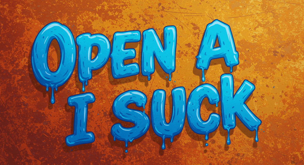 PS Gen AI art “Open a I suck” brought to you by “I don’t know what this is, but it says OpenAI suck, so I’ll take it” and “Garbage Pale Kids styled?”